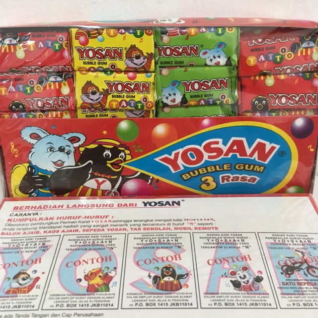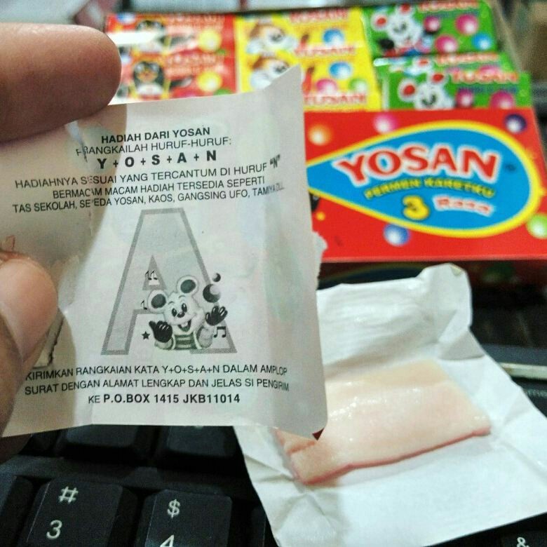 Gimana enggak heboh coba, sejak 1986 saja konon baru ada. Permen ini adalah salah satu legenda dari banyak kegemaran anak sd kala itu. Manisnya saya udah lupa gimana, coba deh beli, kata dia. Bukan karena rasanya yang enak atau apa, tapi ada rasa penasaran akan hadiah yang disiapkan pihak perusahaan permen karet tersebut apabila telah mengumpulkan semua huruf dari merk. Huruf n di bungkus permen karet yosan yang selama ini dianggap mitos akhirnya berhasil ditemukan.
